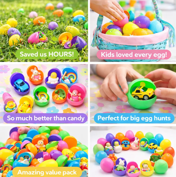 No stuffing. No sorting. No sticky fingers at midnight. These eggs come fully assembled and snapped shut—just open the box and hide. You get your Saturday night back. You wake up calm. That's the real Easter magic.