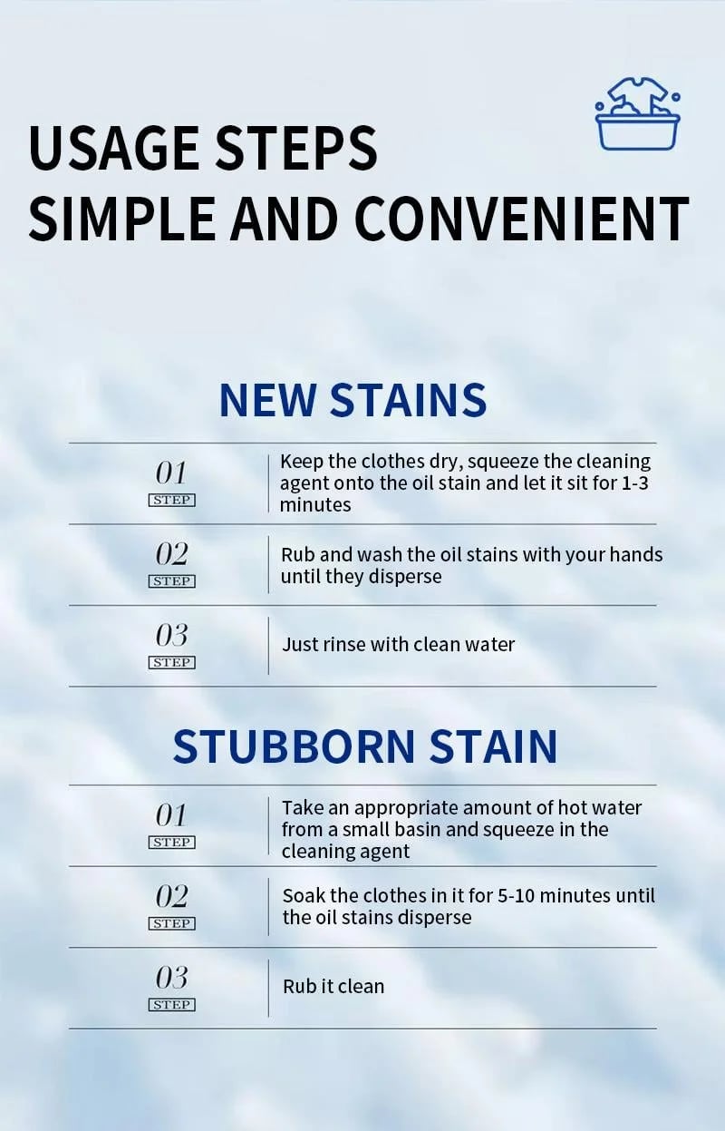 The moment it touches the fabric, the formula activates instantly—dissolving stains fast so you spend less time soaking or scrubbing. Perfect for busy households and last-minute laundry saves.